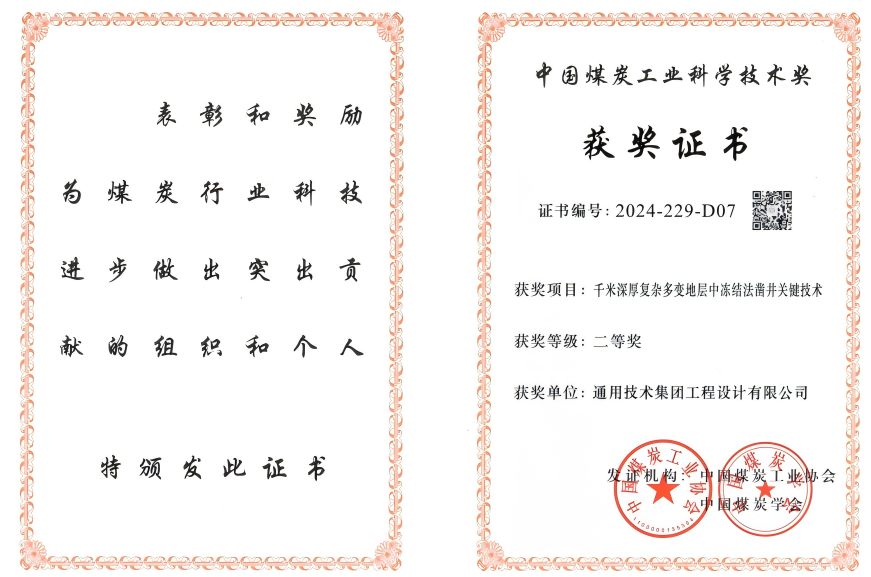 近日,中国煤炭工业协会、中国煤炭学会联合发布中国煤炭工业科学技术获奖名单。公司参与的“千米深厚复杂多变地层中冻结法凿井关键技术”项目荣获2024年度中国煤炭工业科学技术奖二等奖。